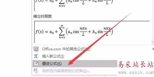 3、在彈出的下拉菜單中選擇“墨跡公式”下拉菜單。