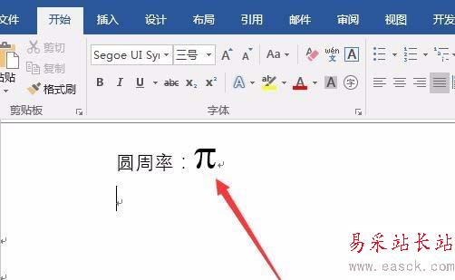 4、這時就可以在Word文檔中插入圓周率的符號了。