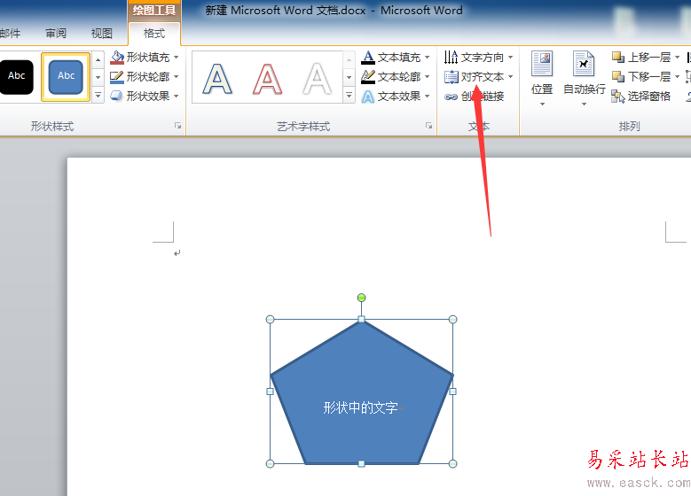 4、編輯好文字,選中形狀,在格式中找到對齊文本,如下圖: