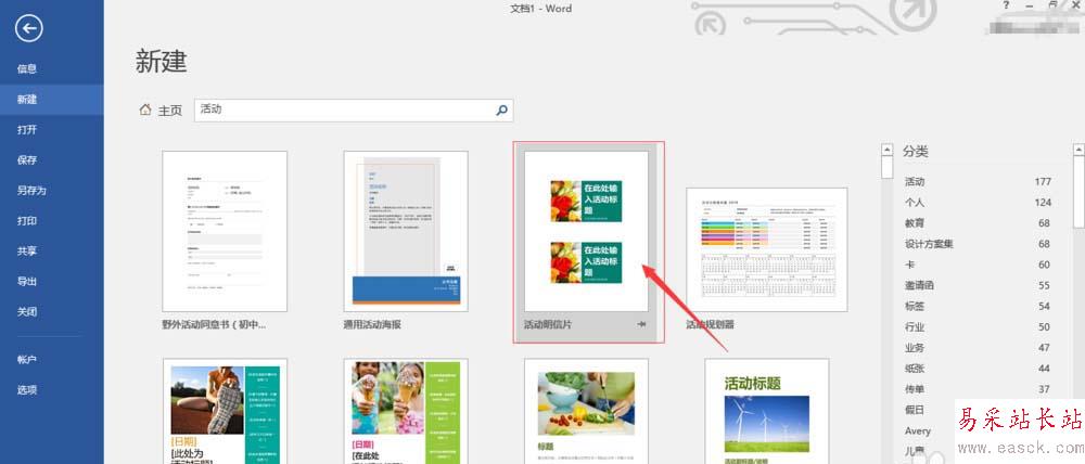 word2016中有很多自帶模板和在線模板,想要設計一個活動明信片就可以使用模板來設計想,下面我們就來看看詳細的教程。。