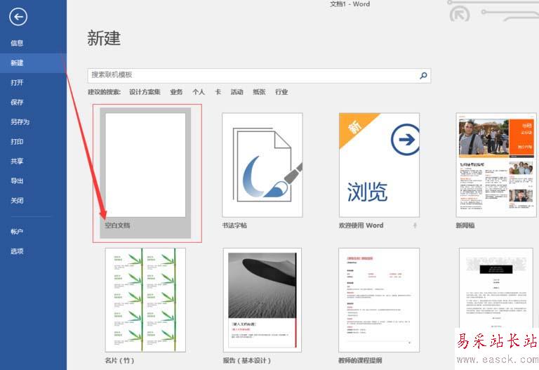 4、首先我們來新建空白文檔,空白文檔屬于模板中的一種,文檔的大小、樣式已經設置好了。單擊“空白文檔”,文檔便建立好了。