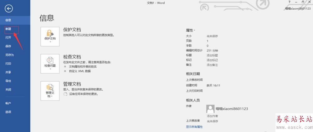 1、啟動word 2016軟件,執行“文件”命令,進入后臺管理界面。