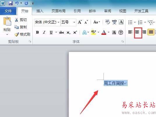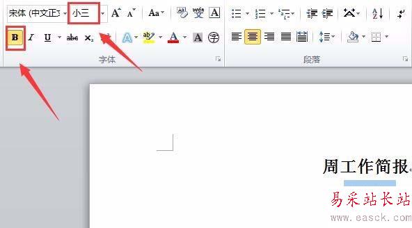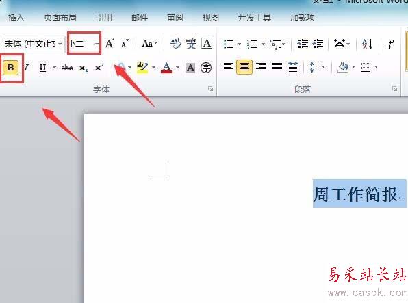 3、點(diǎn)擊居中對(duì)齊選項(xiàng),讓文字居中,然后在上面設(shè)置文字大小,并將文字加粗顯示,如圖所示: