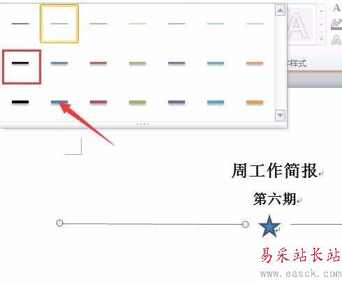 7、選擇五角星形按下shift鍵繪制一個(gè)五角星,再在上面找到直線選項(xiàng),如圖所示: