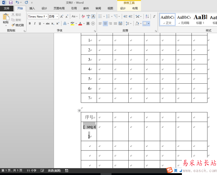 5、這里還需說明下,如果同一文檔接著編制第二張表格,我們輸入的"seq a"需要在加個參數,不然第二張表格的序號會接著第一張表格;