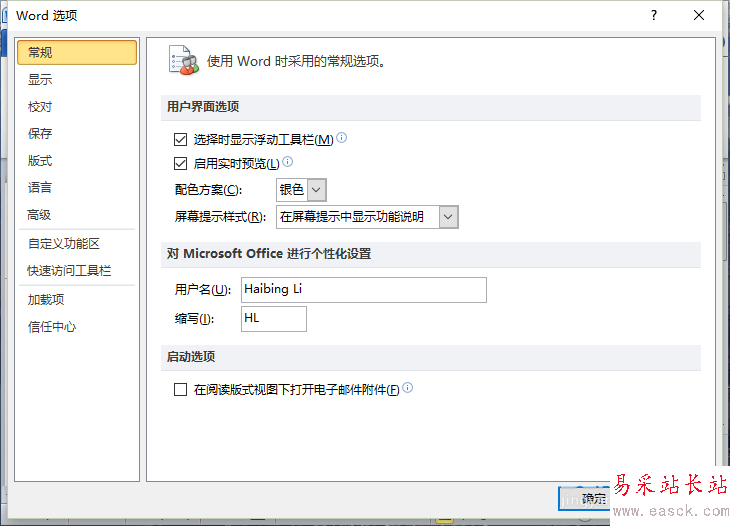 4、點(diǎn)擊“選項(xiàng)”命令選項(xiàng)后,這個(gè)時(shí)候會(huì)彈出工作簿的“Word選項(xiàng)”對(duì)話框。如圖所示;