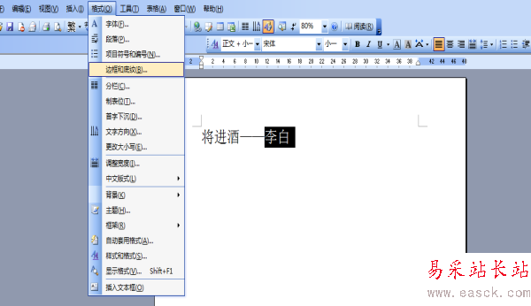 2、選擇菜單欄“格式”——“底紋和邊框”命令。