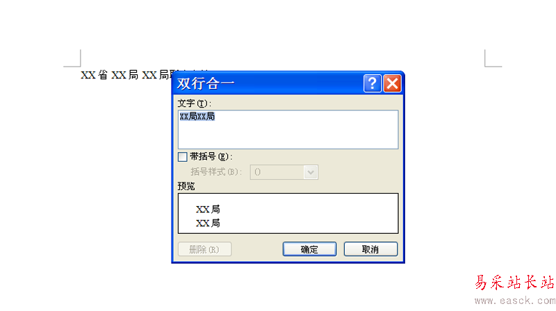 3、從中選擇雙行合一選項,彈出雙行合一對話框后,直接點擊確定按鈕。