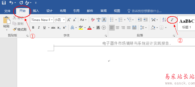 1、點擊“開始”選項,圖中序號①所示,再單擊序號②所示的圖標,即可顯示所有分頁符。