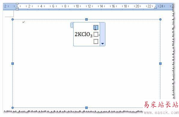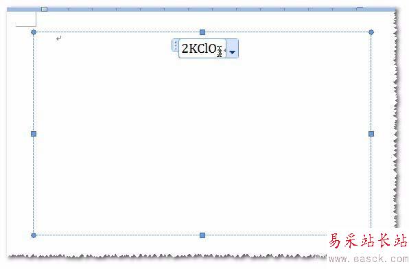 4、現(xiàn)在我們要做的就是分析反應(yīng)方程式構(gòu)成,再看公式中能提供模板進(jìn)行設(shè)計(jì)。本例子中的方程式由四個(gè)模板構(gòu)成:第一個(gè),含有下標(biāo)的化學(xué)式;第二個(gè),分上中下三部分的矩陣;第三個(gè)也是含有下標(biāo)的模板,最后一個(gè)是個(gè)向上的箭頭,直接輸入即可。一個(gè)一個(gè)來,先插入一個(gè)下標(biāo)模板, 輸入2KClO, 在下標(biāo)位置輸入3。如圖。