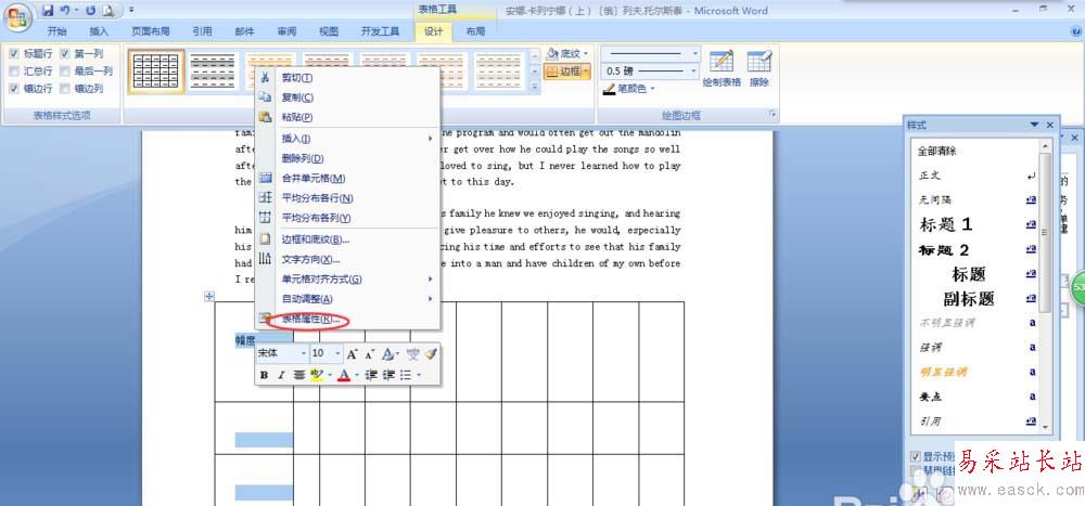 1、把光標放在表格中,單擊鼠標右鍵,選擇【表格屬性】