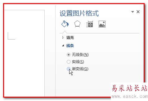 3、右側彈出的操作窗口,選擇填充,再點線條的漸變線,設置圖片邊框漸變效果。