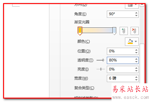 5、再設置黃色的透明度為80%,大家可以根據自己圖片的實際需要來設置這些參數。