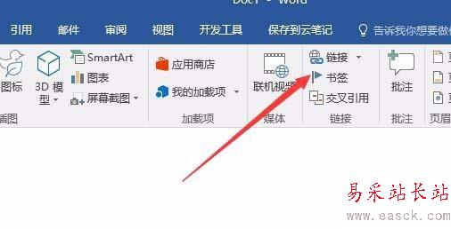 2、然后在打開的插入工具欄上點(diǎn)擊“書簽”按鈕