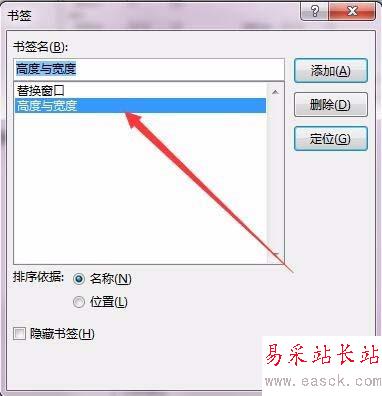 3、在打開的書簽窗口中,可以看到所有設(shè)置的書簽,如果想到某個(gè)書簽的位置,可以選中該書簽后,然后點(diǎn)擊“定位”按鈕,就可以快速定位到該書簽所在的位置了。