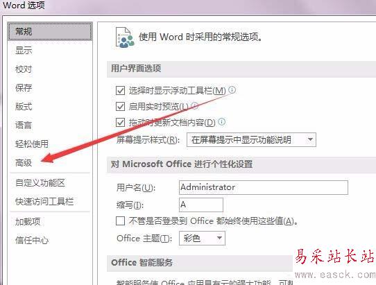 3、這時(shí)會(huì)打開文件選項(xiàng)窗口,點(diǎn)擊窗口左側(cè)邊欄的“高級”菜單項(xiàng)