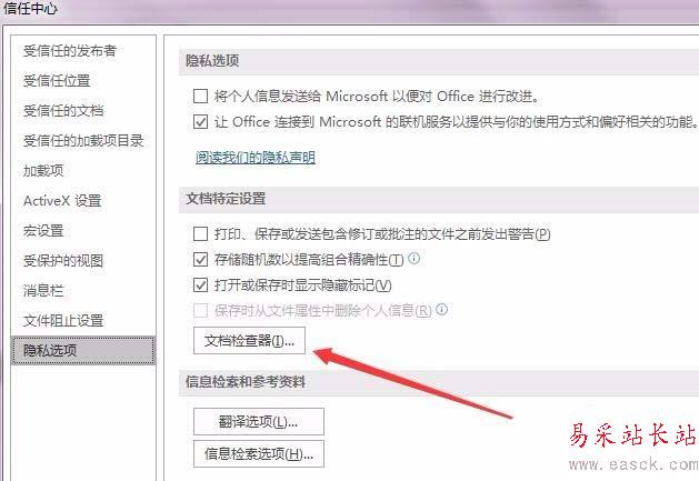 5、在打開的信任中心窗口中,點擊左側的“隱私選項”快捷鏈接