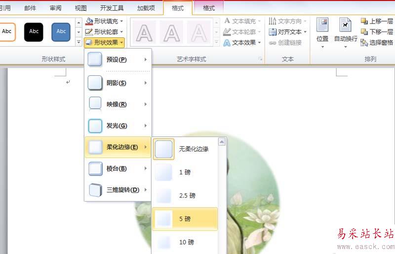 5、執行格式-形狀效果-柔化邊緣命令,從菜單中選擇5磅。