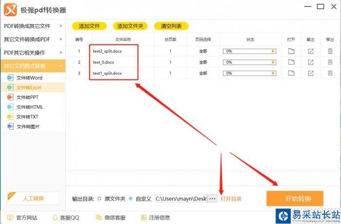 4.將文件添加進(jìn)來后,如果文件數(shù)量多可以按住鼠標(biāo)左鍵對(duì)文件進(jìn)行拖拽排序,確定好后,點(diǎn)擊界面下方的“打開目錄”設(shè)置文件轉(zhuǎn)換后的保存路徑,設(shè)置好后點(diǎn)擊“開始轉(zhuǎn)換”