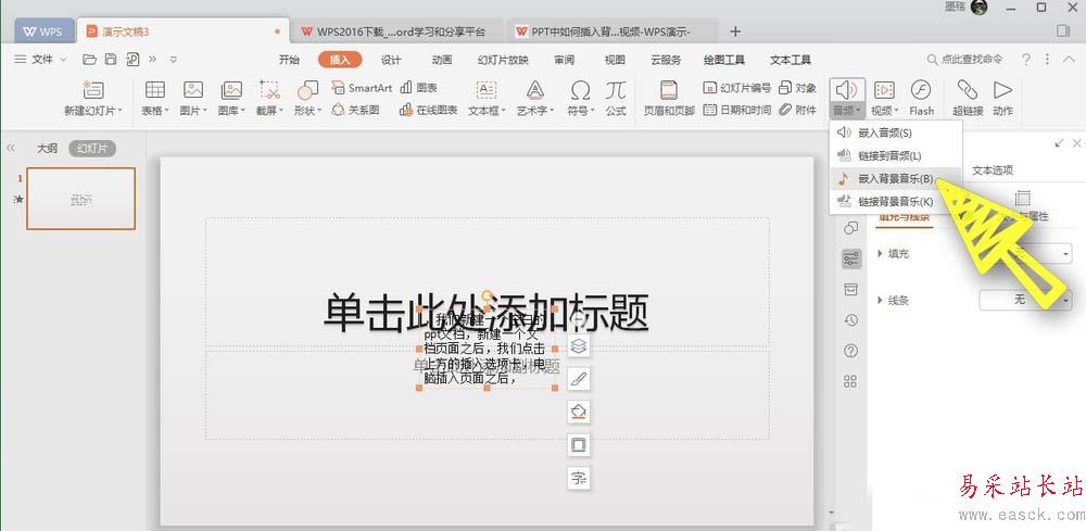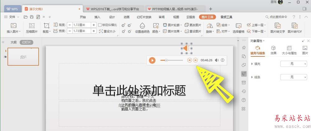 以上就是wps2019插入背景音樂的教程,希望大家喜歡,請繼續關注錯新站長站。