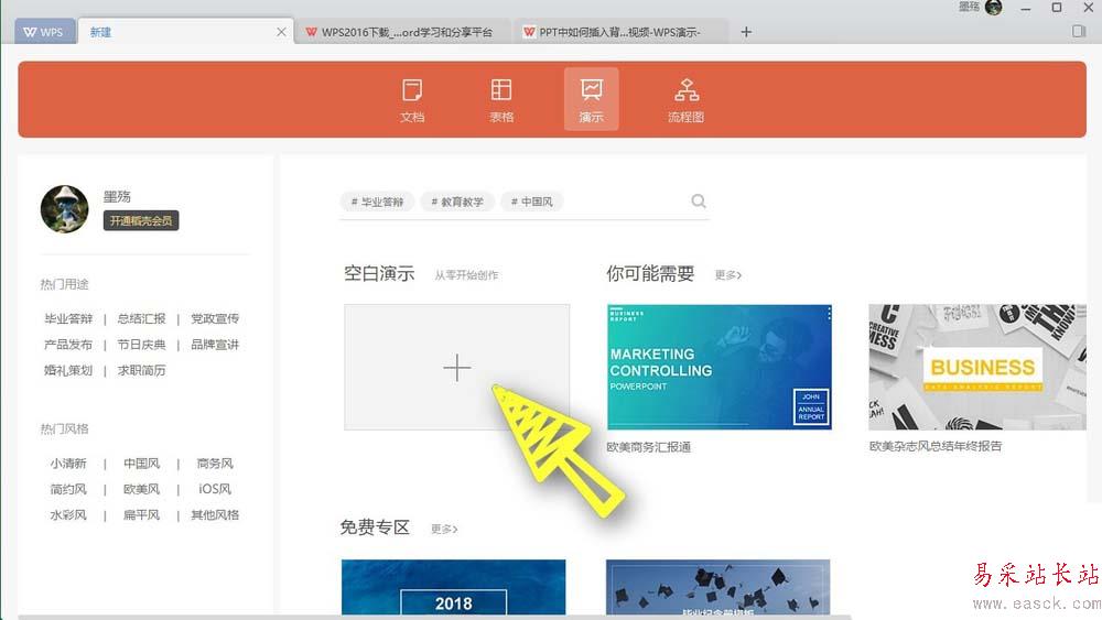 2、我們新建一個空白的ppt文檔,如下圖所示,