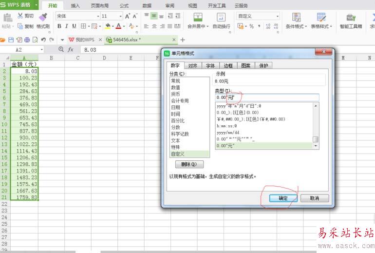 3、自定義——在英文的輸入模式先(“元”)點擊確定。
