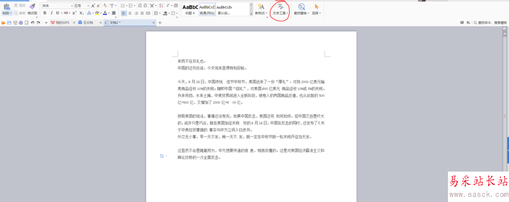這是一部分文字內容,格式、版面混亂,有空行、有空格等。全選文字內容后,找到”開始“欄下的”文字工具“,點選其中的”智能格式整理“,搞定!