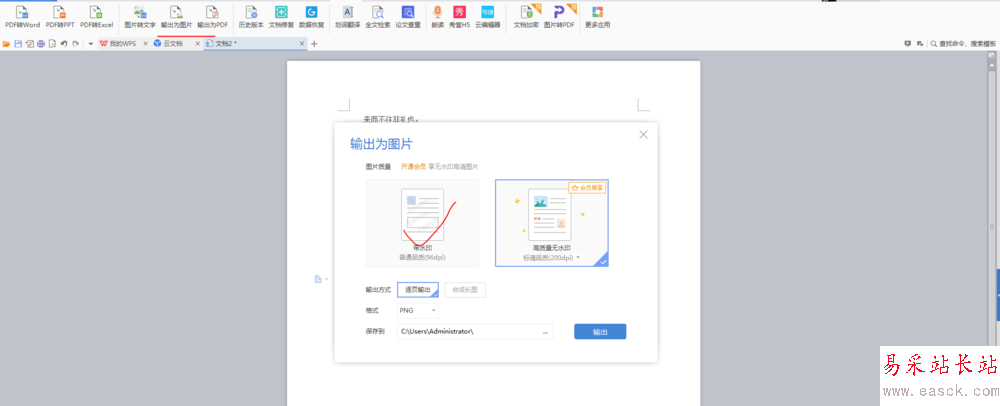找到”特色應用”中的“輸出為圖片”,點擊“帶水印”,輸出,則文字轉化為圖片形式。