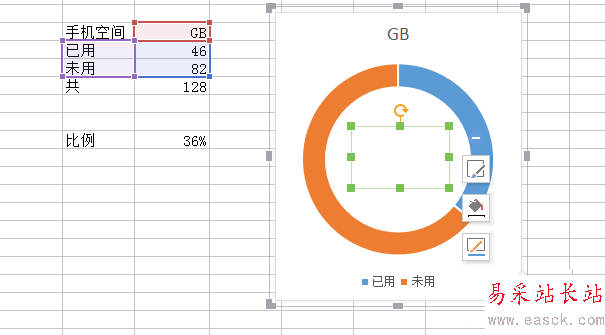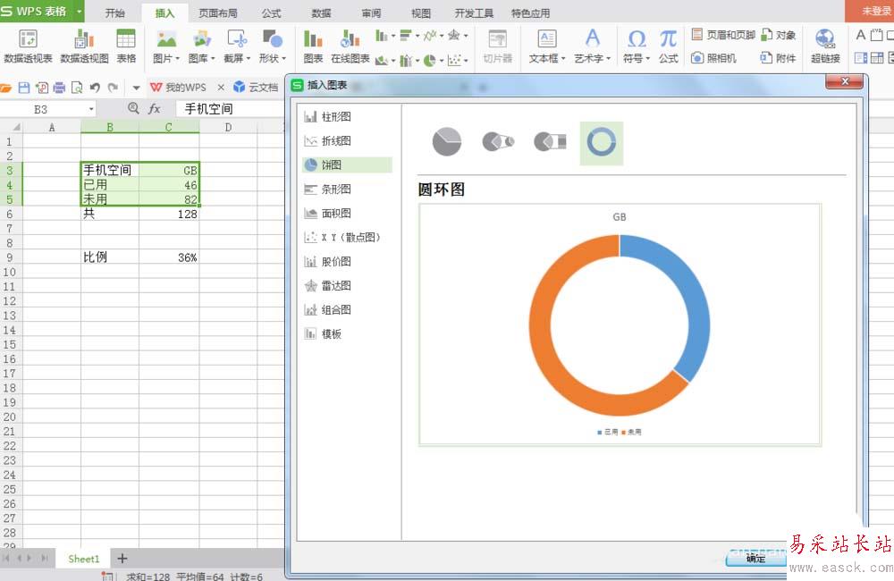 5、選中基本數(shù)據(jù),創(chuàng)建一個圓環(huán)圖