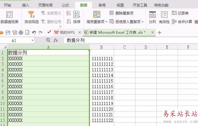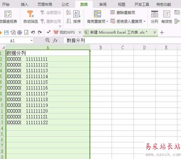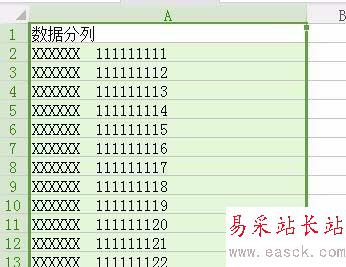 2、鼠標左鍵選擇需要分列的列項內(nèi)容,如下圖所示