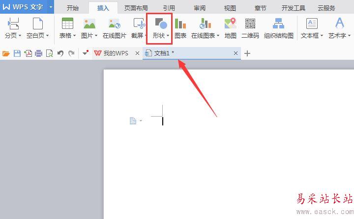 3、在插入選項的編輯工具區里找到形狀選項,如圖所示:
