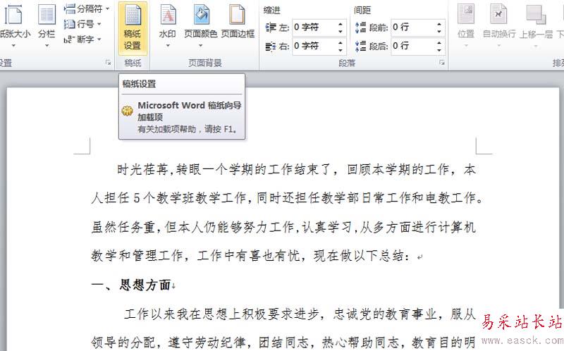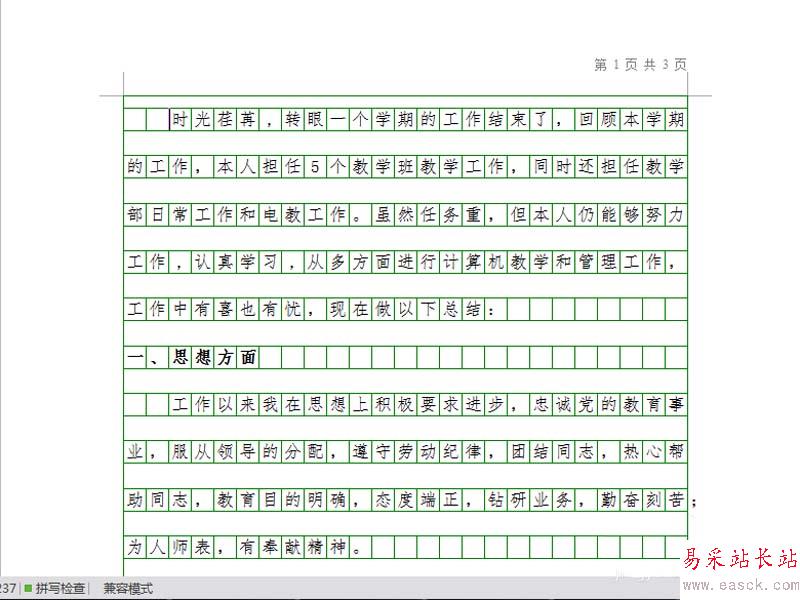 我們在對文字進行設置的時候,有時需要把文字內容轉換成稿紙格式(效果如下圖),那么該如何設置呢?現在就把使用過程和截圖分享給大家,希望對你有所幫助。
