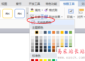4、點擊“輪廓”工具的倒三角,在其彈出的菜單中選擇“無線條顏色”即可