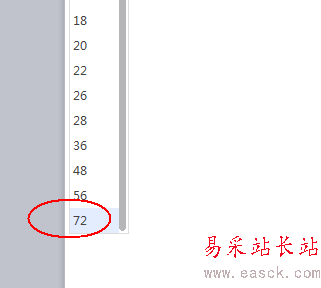 4、點擊這個數字框旁邊的倒三角,往下拉并單擊它的最大字體號。我們發現是72.