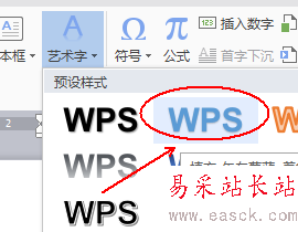2、點(diǎn)擊“插入”工具欄列表,在其下方找到“藝術(shù)字”工具并選擇自己喜歡的藝術(shù)字樣式。
