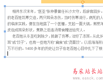 1、在已經(jīng)制作好的菜譜名稱下方,使用“文本框”畫一個方框并將來歷粘貼進(jìn)去。