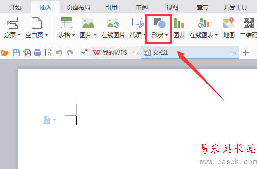 3、點擊插入選項,在其編輯工具區里找到形狀選項,如圖所示:
