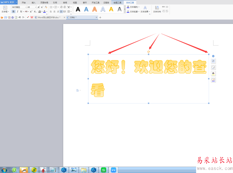 7、還可以設置藝術字的其他效果,比如旋轉、移動等