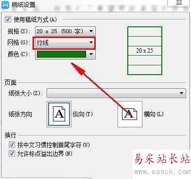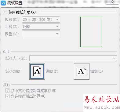 3、彈出稿紙設置對話框,在使用稿紙方式打鉤。