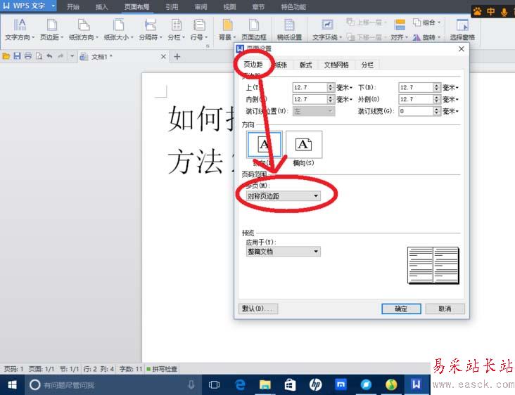 2、在打開的窗口點擊【頁邊距】,接著在頁碼范圍一欄選擇【對稱頁邊距】,實際效果就是一張A4紙被分割成了兩張A5紙。