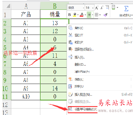 2、選擇要改變數據的那一列,點擊右鍵選擇"設置單元格格式"