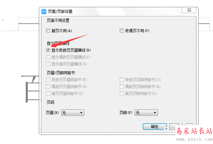 1、點擊頁眉橫線,上方彈出頁眉頁腳欄,在欄中點擊“頁眉頁腳選擇”,彈出頁眉/頁腳設置欄。