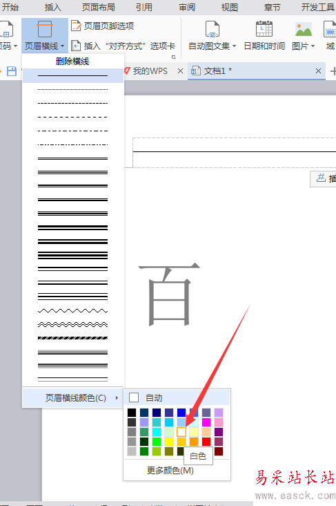 2、把頁眉橫線的顏色設置為白色,這樣頁眉橫線就看不見了。