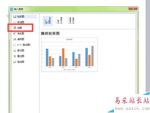 5、彈出來的圖標之中,有一個叫做餅圖的選項,點擊一下。