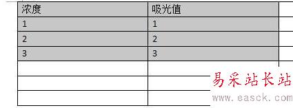 2、打開wps這個軟件后,我們輸入自己需要的數據。小編的左側輸入的是濃度,右側輸入的是吸光值。