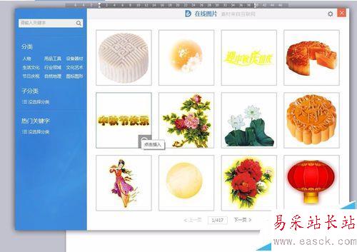 4、在插入編輯界面里找到在線圖片選項,如圖所示: