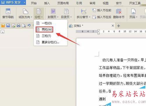 6、點擊兩欄后,可以看到文字區里的文字已經分成兩欄顯示了,如圖所示: