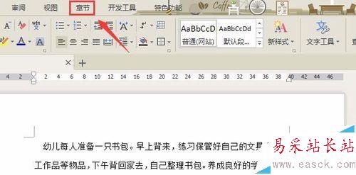 2、在文字輸入區,輸入一些文字,然后再上面的菜單欄里找到章節菜單,如圖所示: