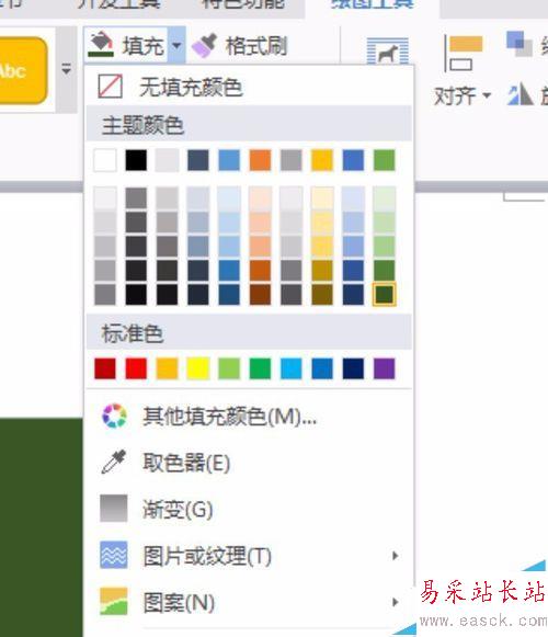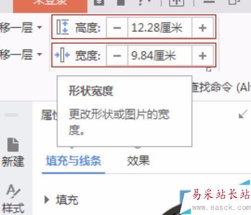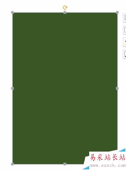 2、在頁面中按住左鍵不放拖畫出一個長方形,然后調整“形狀”的尺寸,形狀寬為9cm/形狀高為13cm。在給它換個深綠顏色,點一下填充旁邊的三角圖標,就可以進行更換不同顏色,如圖所示