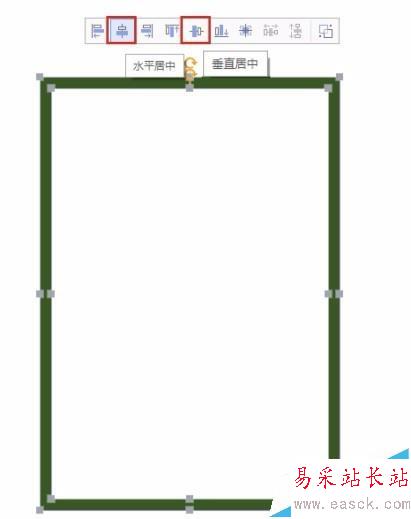 4、按shift鍵選擇兩個長方形,點擊上面的水平居中和垂直居中,使兩個長方形水平垂直居中,如圖所示